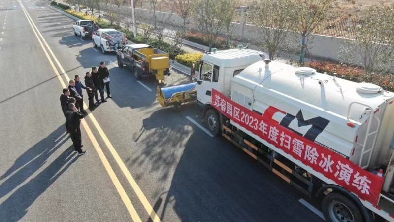 為切實做好今年冬季的掃雪除冰工作,提升應急處置能力,11月24日下午,建發(fā)公司組織開展除雪除冰應急演練。宿遷市交警二大隊副大隊長肖巖松、園區(qū)城維處處長孫建、建發(fā)公司副總經(jīng)理倪松參加演練活動。