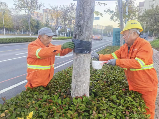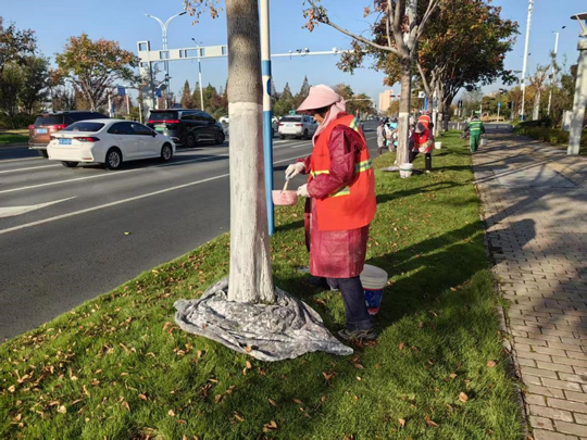 隨著氣溫逐步降低,建發(fā)公司全面啟動(dòng)樹(shù)木涂白工作,為道路、公園、廣場(chǎng)及景觀帶的喬灌木穿上抗凍防寒、抵御病蟲(chóng)害的“防護(hù)衣”,以保障其安全越冬,提高保存率,進(jìn)一步擦亮城市生態(tài)底色。