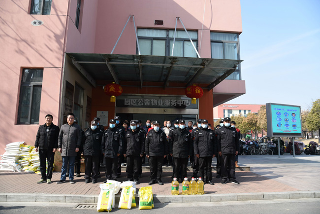 在新春佳節(jié)即將來臨之際,27午,公司副總經(jīng)理倪松慰問了奮戰(zhàn)在一線保潔及保安人員,為他們送上了米、面粉、油等慰問品。