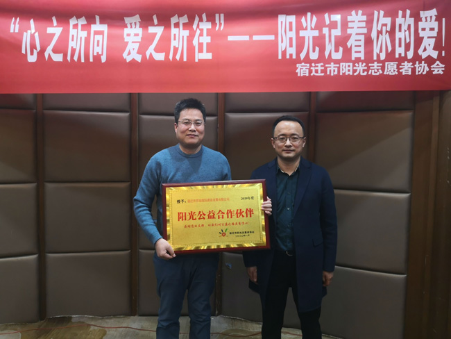 近日, 公司榮獲“宿遷市2019年度陽光公益合作伙伴”殊榮。